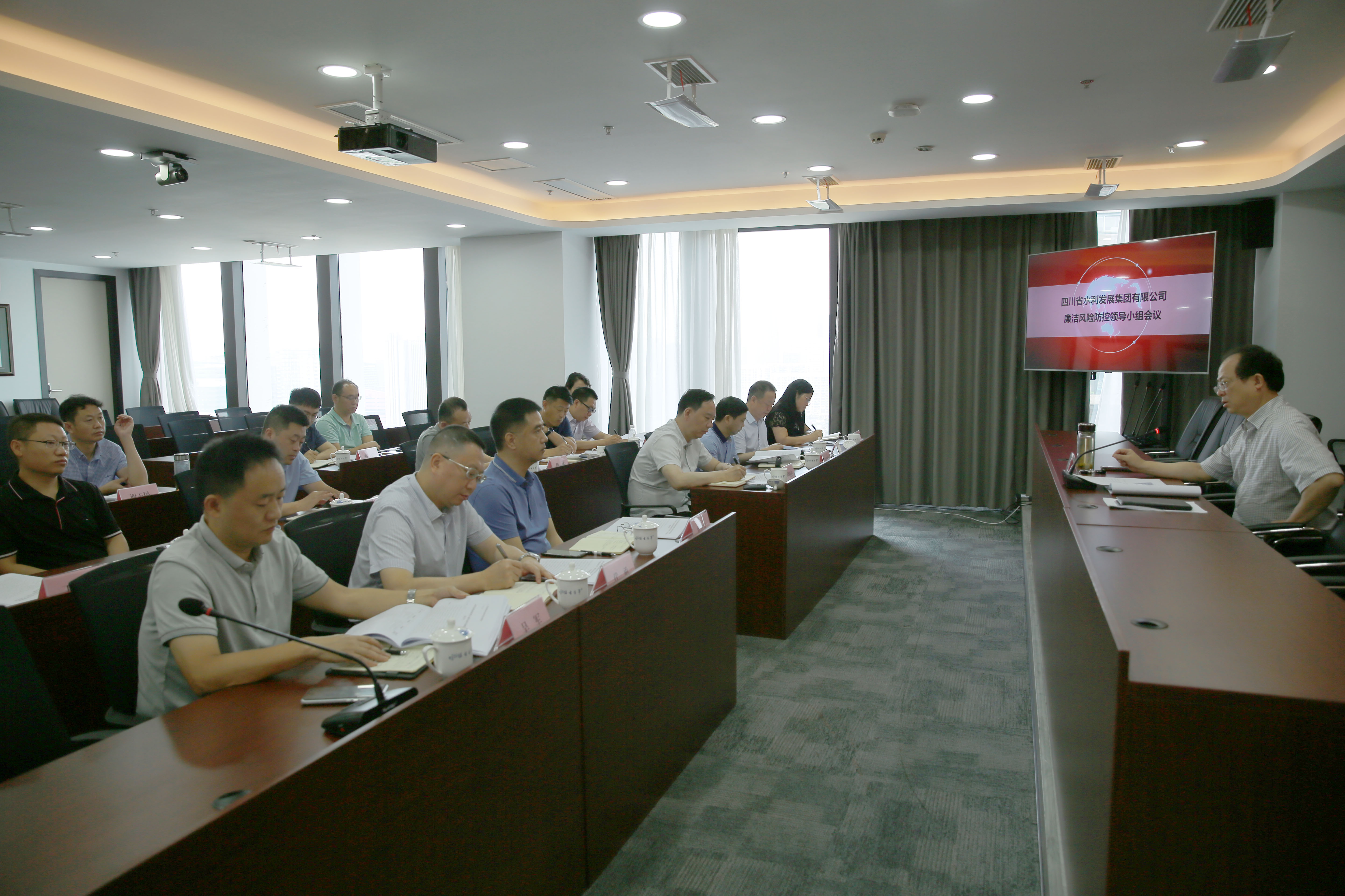 為進一步加強廉潔風險防控,從源頭上防止不廉潔行為的發生,切實增強集團干部員工廉潔從業意識和廉潔風險防范能力。6月30日上午,水發集團召開廉潔風險防控推進會議。會議的主要任務是貫徹落實上級和集團黨委關于開展廉潔風險防控工作精神,研究部署全面推進集團公司廉潔風險防控工作。集團黨委書記、董事長鐘杰主持會議并作了重要講話。集團廉潔風險防控工作領導小組成員共30人參加了會議。