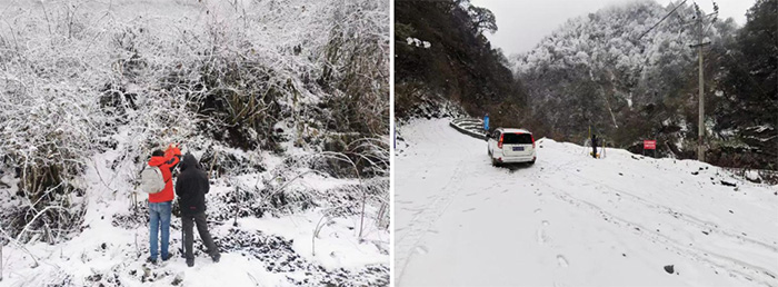 2021年12月的一天,勘察分院麥高飛同志與其他同志早上7點天未亮就起床去腳基坪電站廠房接向導(林場護林員),8點30分在溝口架設好RTK基站后,他們和兩名向導就沿著泥石流溝(黃沙溝)順溝而上,沿途雨雪交加,雪越下越大,到處都是陡坎跌水與溪流,在向導帶領下,他們四肢并用攀爬在亂石遍布的溝谷,經過不懈的努力,終于在中午兩點左右測放完粽隧ZK2號深孔。饑寒交迫的他們在附近的小溪邊冒雪草草吃了幾口自熱方便飯后,就立即返程。于晚上6點30分左右安全到達腳基坪電站附近的318國道邊,共用時10個小時。在上山的路上,汗水濕透了內衣,雨雪打濕了外套,放孔后的他們被寒風吹得瑟瑟發抖,艱難到達318國道邊后,累得癱坐在公路邊的值班車上,只想坐下來好好休息。這僅僅是麥高飛同志進行地質勘察工作的一個縮影!這也是麥高飛同志的工作日常!