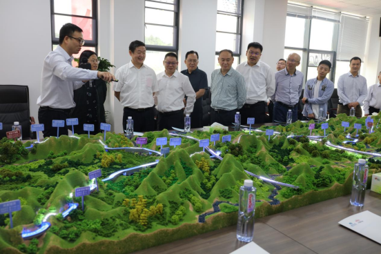 隆文非和文祥明為Ⅱ標(biāo)項(xiàng)目部揭牌,與會人員參觀了Ⅱ標(biāo)項(xiàng)目模型沙盤,聽取了項(xiàng)目部負(fù)責(zé)人工程概況和相關(guān)規(guī)劃介紹并參觀了項(xiàng)目部。