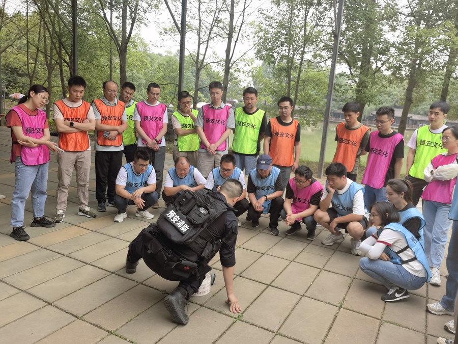 活動當天上午,退役消防員張鑫教官現場演示了盤卷水帶、水槍滅火、三角巾包扎等應急救援方法,參與人員分組完成滅火演練、搶救傷員、水帶作戰等一系列趣味十足的拓展演練活動。整場活動參與人員團結協作、積極配合,一個又一個的互動環節,讓加油聲、鼓掌聲此起彼伏,現場氣氛異常熱烈。