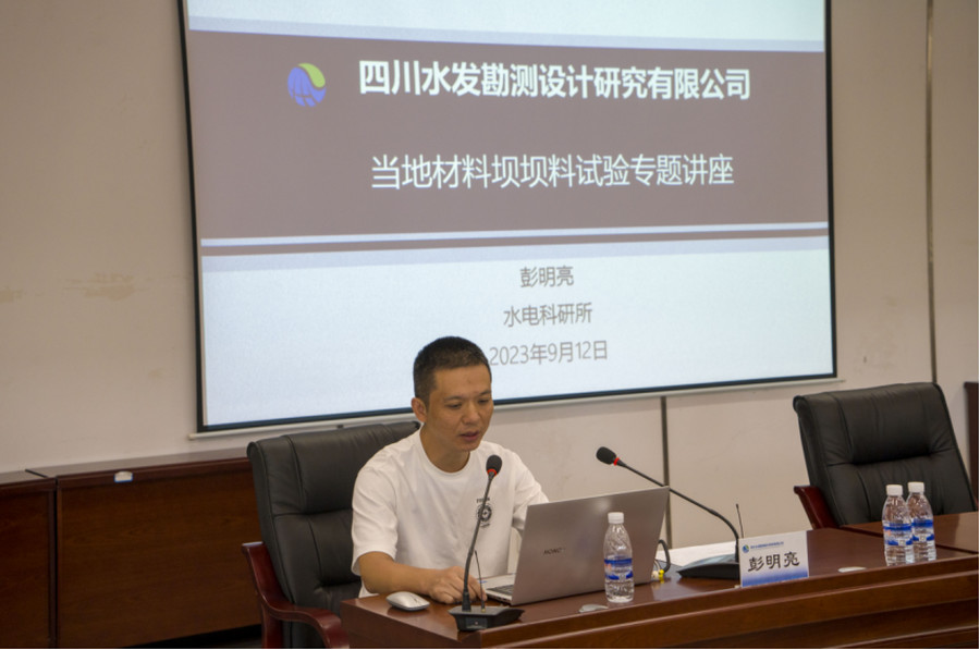 在講授中,陸恩施作“從水布埡、天生橋、紫坪鋪等工程看面板壩填筑標準和經驗分享”,彭明亮作“當地材料壩壩料試驗技術專題交流(粗粒土試驗、細粒土試驗、泥質巖防滲料)”。兩位主講人將豐富的實踐經驗同理論相結合,深入淺出的將當地材料壩填筑及試驗技術做了交流分享,干貨滿滿的課程令在場職工獲益匪淺。