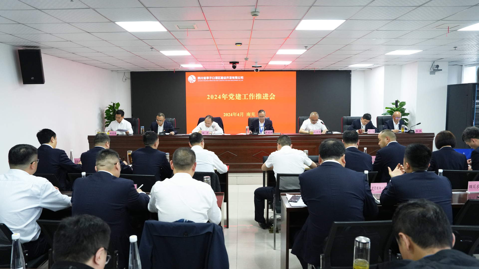 亭子口灌區(qū)一期工程四個(gè)標(biāo)段總承包單位項(xiàng)目負(fù)責(zé)人、項(xiàng)目黨組織書記,亭子口公司全體干部職工參加會(huì)議。