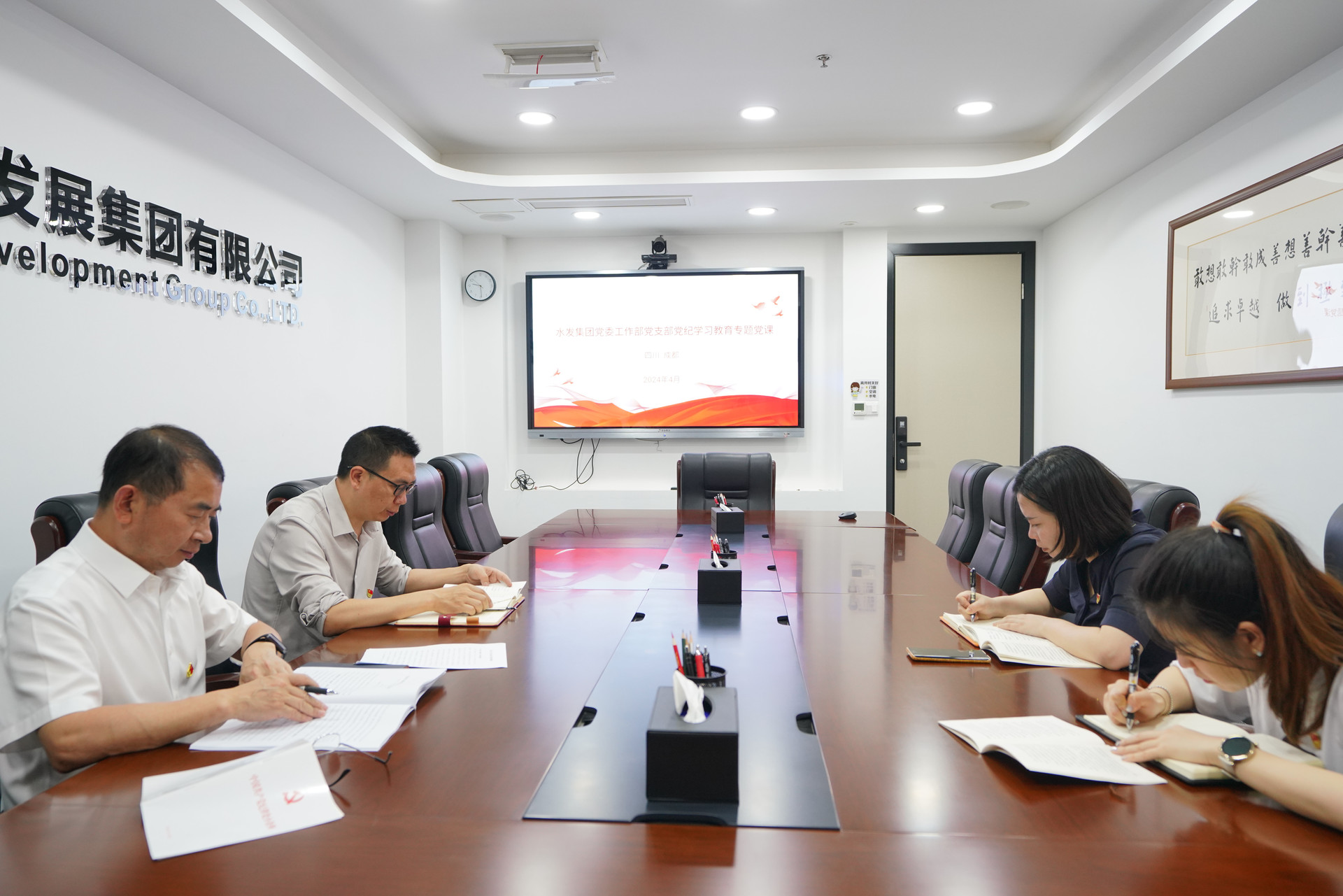 2024年4月28日,集團總部黨委工作部黨支部在集團一會議室召開黨紀學習教育專題黨員大會。集團黨委書記、董事長王華以普通黨員身份參加會議并作專題黨課。