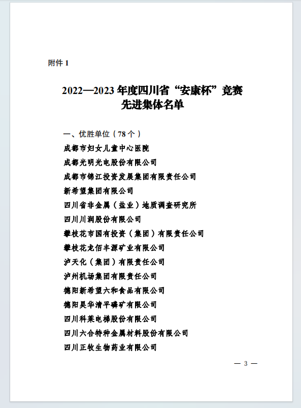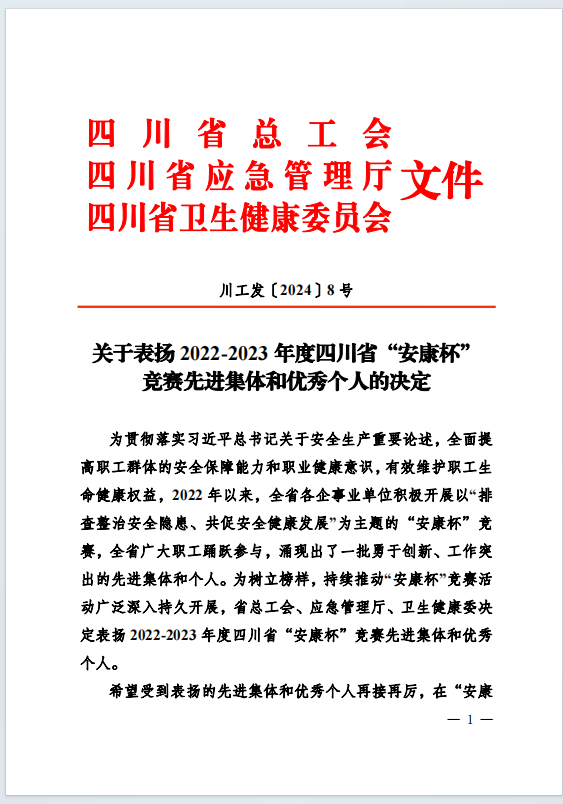 喜報!集團榮獲2022-2023年度四川省“安康杯” 競賽先進集體和優秀個人